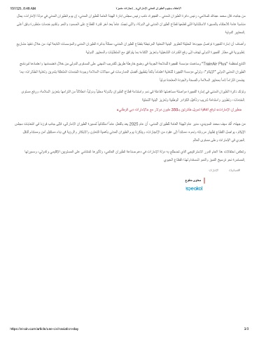 ﻰﻠﻋأ ﻖﻓو ةروطﺗﻣ تﺎﻣدﺧ مﯾدﻘﺗو وﻣﻧﻟاو دوﻣﺻﻟا ﻰﻠﻋ عﺎطﻘﻟا ةردﻗ رﺧآ دﻌﺑ ً ﺎﻣﺎﻋ دّﺳﺟﺗ ﻲﺗﻟاو ،ﺔﻟودﻟا ﻲﻓ ﻲﻧدﻣﻟا نارﯾطﻟا عﺎطﻗ ﺎﮭﻌطﻗ ﻲﺗﻟا ﺔﯾﺋﺎﻧﺛﺗﺳﻻا ةرﯾﺳﻣﻟﺎﺑ ءﺎﻔﺗﺣﻼﻟ ﺔﻣﺎھ ﺔﺑﺳﺎﻧﻣ