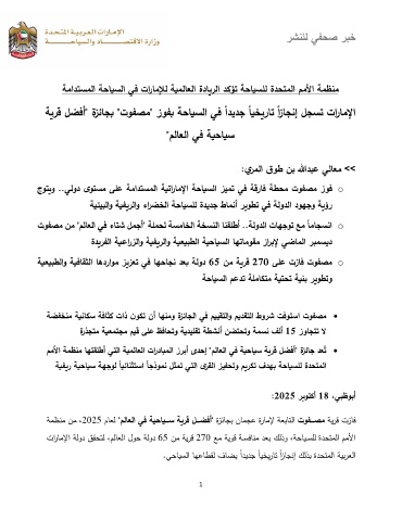 ﺔﻤظﻨﻤ نﻤ ، 2025 مﺎﻌﻟ "مﻟﺎﻌﻟا ﻲﻓ ﺔ�ﺤﺎ�ــــﺴ ﺔ�رﻗ ﻞــــضﻓأ " ةزﺌﺎﺠﺒ نﺎﻤﺠﻋ ةرﺎﻤ ﻹ ﺔﻌﺒﺎﺘﻟا توﻔــــصﻤ ﺔﯿرﻗ تزﺎﻓ