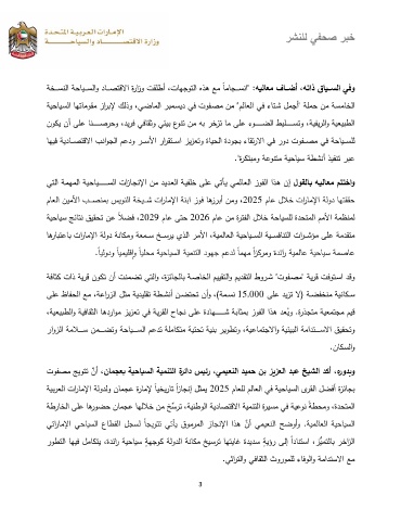 ﺔﯿﺒرﻌﻟا تارﺎﻤﻹا ﺔﻟودﻟو نﺎﻤﺠﻋ ةرﺎﻤﻹ ً ﺎﯿﺨﯿرﺎﺘ ً ازﺎﺠﻨإ لﺜﻤﯿ 2025 مﺎﻌﻠﻟ مﻟﺎﻌﻟا ﻲﻓ ﺔﯿﺤﺎﯿﺴﻟا ىرﻘﻟا لﻀﻓأ ةزﺌﺎﺠﺒ