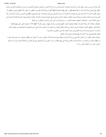 ءﺎطﻌﻟا ﺞﮭﻧ ﻰﻠﻋ رﯾﺳﻟا لﺻاوﺗ ،"ﷲ ﮫظﻔﺣ" ﺔﻟودﻟا سﯾﺋر -نﺎﯾﮭﻧ لآ دﯾاز نﺑ دﻣﺣﻣ ﺦﯾﺷﻟا وﻣﺳﻟا بﺣﺎﺻ ةدﺎﯾﻘﺑ ،تارﺎﻣﻹا ﺔﻟود نإ" :ﮫﺗدﺎﻌﺳ فﺎﺿأو