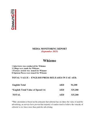TOTAL VALUE - ENGLISH PRESS RELEASES IN UAE AED.
