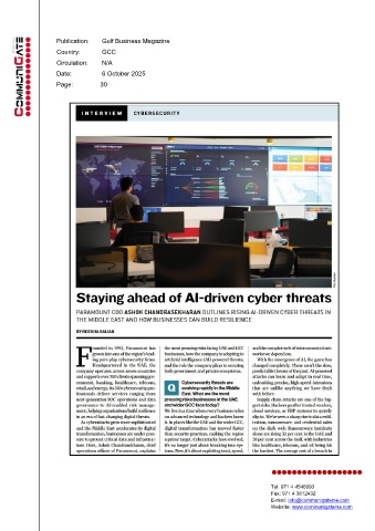 Publication: Gulf Business Magazine Country: GCC Circulation: N/A Date: 6 October 2025 Page: 30 Tel: 971 4 4546093 Fax: 971 4 3612432 E-mail: info@communigateme.com Website: www.communigateme.com
