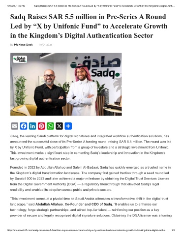 4/16/25, 1:49 PM Sadq Raises SAR 5.5 million in Pre-Series A Round Led by "X by Unifonic Fund" to Accelerate Growth in the Kingdom’s Digital Auth…