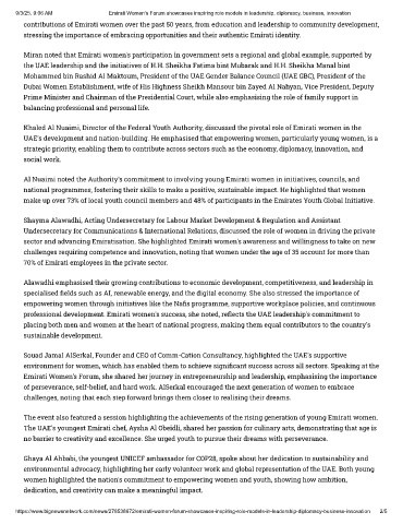 professional development. Emirati women's success, she noted, reflects the UAE leadership's commitment to