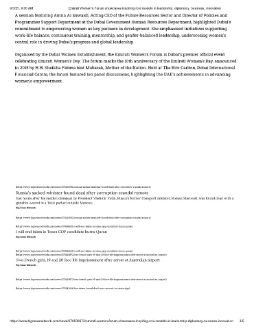 9/3/25, 9:06 AM Emirati Women's Forum showcases inspiring role models in leadership, diplomacy, business, innovation