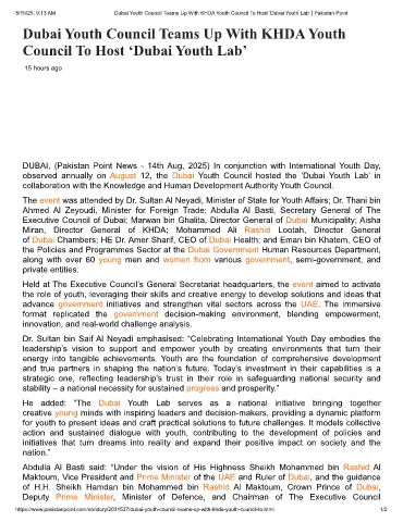 8/15/25, 9:13 AM Dubai Youth Council Teams Up With KHDA Youth Council To Host ‘Dubai Youth Lab’ | Pakistan Point