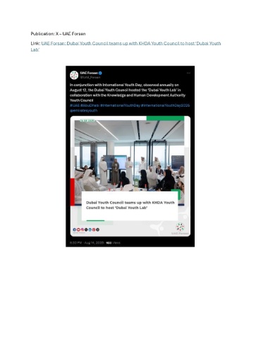 Publication: X – UAE Forsan Link: UAE Forsan: Dubai Youth Council teams up with KHDA Youth Council to host ‘Dubai Youth Lab’