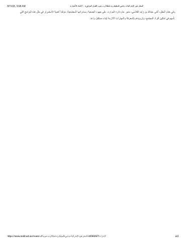 ﻲﺗﻟا ﺞﻣارﺑﻟا هذھ لﺛﻣ ﻲﻓ رارﻣﺗﺳﻻا ﺔﯾﻣھأ ًادﻛؤﻣ ،ﺔﯾﻌﻣﺗﺟﻣﻟا ﺎﮭﺗاردﺎﺑﻣو ﺔﯾﻌﻣﺟﻟا دوﮭﺟ ﻰﻠﻋ ،دراوﻣﻟا ةرﺋاد مﺎﻋ رﯾدﻣ ،ﻲﺳﻼﻔﻟا دﯾاز نﺑ ﷲدﺑﻋ ﻰﻧﺛأ ،لﻔﺣﻟا مﺎﺗﺧ ﻲﻓو