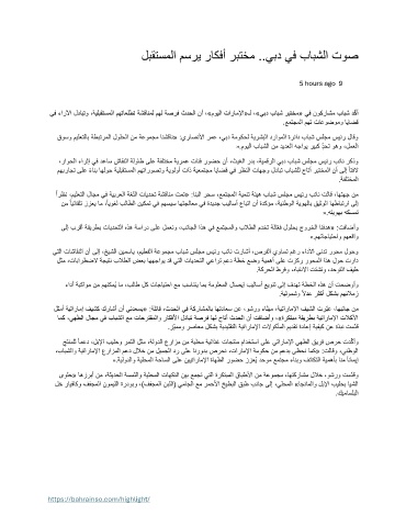 يف ءارلآا لدابتو ،ةيلبقتسملا مهتاعلطت ةشقانمل مهل ةصرف ثدحلا نأ ،»مويلا تاراملإا«ـل ،»يبد بابش ربتخم« يف نوكراشم بابش دّكأ