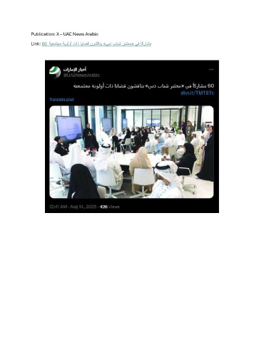 Publication: X – UAE News Arabic Link: 60 ةيعمتجم ةيولوأ تاذ اياضق نوشقاني »يبد بابش ربتخم« يف ًاكراشم