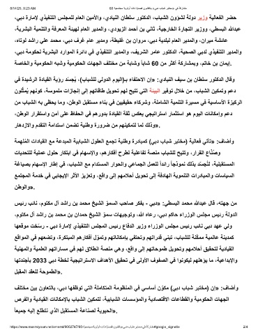 ،ﻲﺑد ةرﺎﻣﻹ يذﯾﻔﻧﺗﻟا سﻠﺟﻣﻠﻟ مﺎﻌﻟا نﯾﻣﻷاو ،يدﺎﯾﻧﻟا نﺎطﻠﺳ روﺗﻛدﻟا ،بﺎﺑﺷﻟا نوؤﺷﻟ ﺔﻟود رﯾزو ﺔﯾﻟﺎﻌﻔﻟا رﺿﺣ