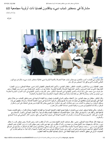 8/14/25, 9:22 AM 60 ﺔﯾﻌﻣﺗﺟﻣ ﺔﯾوﻟوأ تاذ ﺎﯾﺎﺿﻗ نوﺷﻗﺎﻧﯾ «ﻲﺑد بﺎﺑﺷ رﺑﺗﺧﻣ» ﻲﻓ ً ﺎﻛرﺎﺷﻣ