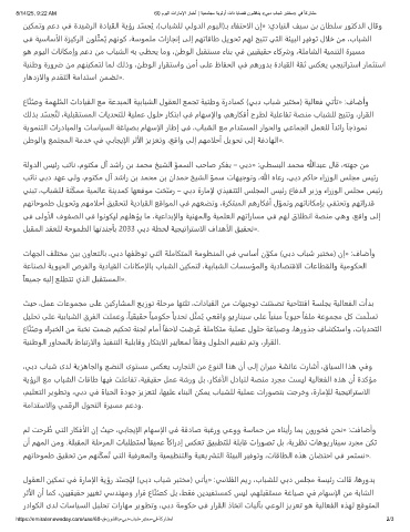 ﻮﻫ مﻮﻴﻟا تﺎﻧﺎﻜﻣإو ﻢﻋد ﻦﻣ بﺎﺒﺸﻟا ﻪﺑ ﻰﻈﺤﻳ ﺎﻣو ،ﻦﻃﻮﻟا ﻞﺒﻘﺘﺴﻣ ءﺎﻨﺑ ﻲﻓ ﻦﻴﻴﻘﻴﻘﺣ ءﺎﻛرشو ،ﺔﻠﻣﺎﺸﻟا ﺔﻴﻤﻨﺘﻟا ةﺮﻴﺴﻣ