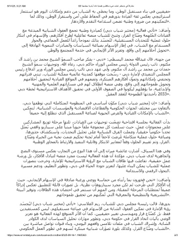 رﺎﻤﺜﺘﺳا ﻮھ مﻮﯿﻟا تﺎﻧﺎﻜﻣإو ﻢﻋد ﻦﻣ بﺎﺒﺸﻟا ﻪﺑ ﻰﻈﺤﻳ ﺎﻣو ،ﻦطﻮﻟا ﻞﺒﻘﺘﺴﻣ ءﺎﻨﺑ ﻲﻓ ﻦﯿﯿﻘﯿﻘﺣ