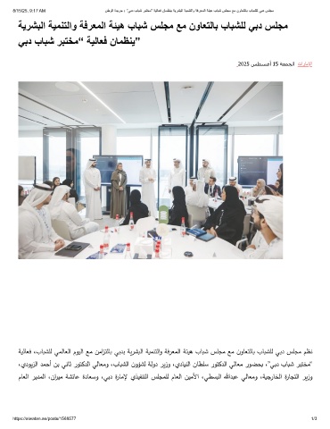 8/15/25, 9:17 AM نطوﻟا ةدﯾرﺟ › ”ﻲﺑد بﺎﺑﺷ رﺑﺗﺧﻣ“ ﺔﯾﻟﺎﻌﻓ نﺎﻣظﻧﯾ ﺔﯾرﺷﺑﻟا ﺔﯾﻣﻧﺗﻟاو ﺔﻓرﻌﻣﻟا ﺔﺋﯾھ بﺎﺑﺷ سﻠﺟﻣ ﻊﻣ نوﺎﻌﺗﻟﺎﺑ بﺎﺑﺷﻠﻟ ﻲﺑد سﻠﺟﻣ