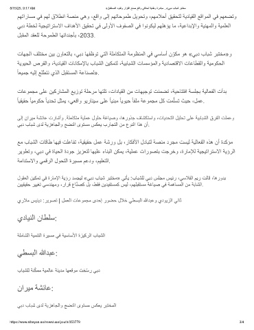 لوﻘﻌﻟا نﯾﻛﻣﺗ ﻲﻓ ةرﺎﻣﻹا ﺔﯾؤر دﺳﺟﯾﻟ «ﻲﺑد بﺎﺑﺷ رﺑﺗﺧﻣ» ﻲﺗﺄﯾ :بﺎﺑﺷﻠﻟ ﻲﺑد سﻠﺟﻣ سﯾﺋر ،ﻲﺳﻼﻔﻟا مﯾر تﻟﺎﻗ ،ﺎھرودﺑ