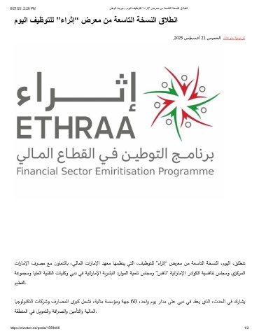8/21/25, 2:28 PM نطوﻟا ةدﯾرﺟ › موﯾﻟا فﯾظوﺗﻠﻟ ”ءارﺛإ“ ضرﻌﻣ نﻣ ﺔﻌﺳﺎﺗﻟا ﺔﺧﺳﻧﻟا قﻼطﻧا