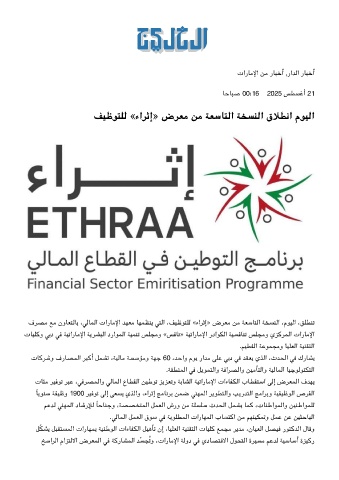 فﺮﺼﻣ ﻊﻣ نوﺎﻌﺘﻟﺎﺑ ،ﻟﺎﻤﻟا تارﺎﻣﻹا ﺪﻬﻌﻣ ﺎﻬﻤﻈﻨﻳ ﺘﻟا ،ﻒﻴﻇﻮﺘﻠﻟ «ءاﺮﺛإ» ضﺮﻌﻣ ﻦﻣ ﺔﻌﺳﺎﺘﻟا ﺔﺨﺴﻨﻟا ،مﻮﻴﻟا ،ﻖﻠﻄﻨﺗ