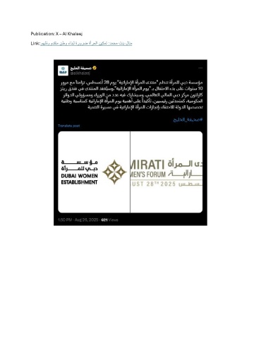 Publication: X – Al Khaleej Link: مهلُمو مدقتم نطو ءانبل ةرورض ةأرملا نيكمت :دمحم تنب لانم