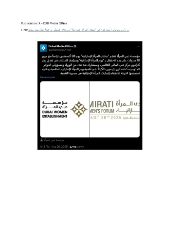 Publication: X – DXB Media Office Link: دمحم تنب لانم ةياعرب سطسغأ 28 موي "ةيتاراملإا ةأرملا ىدتنم" يف نوكراشي نولوؤسمو ءارزو