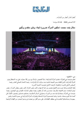 ﺮﻳﺪﻘﺗو ﺔﻴﻤﻨﺘﻟا ةﺮﻴﺴﻣ ﻓ ﺔﻴﺗارﺎﻣﻹا ةأﺮﻤﻟا تازﺎﺠﻧﺈﺑ ءﺎﻔﺘﺣﻼﻟ ﺔﻟوﺪﻟا ﺎﻬﺼﺼﺨﺗ ﺔﻴﻨﻃو ﺔﺒﺳﺎﻨﻣ ﻪﺘﻔﺼﺑ مﻮﻴﻟا اﺬﻫ ﺔﻴﻤﻫأ