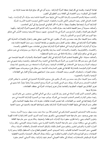 ﻦﻣ ﺔﻗرﺎﻓ ﺔﻤﺼﺑ ﻪﻴﻓ كﺮﺘﺗ ﻊﻗﻮﻣ ﻞﻛ ﻓ هﺮﺛأ ىﺮﻧو ..ﺔﻴﺗارﺎﻣﻹا ةأﺮﻤﻟا ﻪﻘﻘﺤﺗ زﺎﺠﻧإ ﻞﻛ ﻓ ﻪﺴﻤﻠﻧو ،ةﺪﻴﺷﺮﻟا ﺎﻨﺗدﺎﻴﻗ