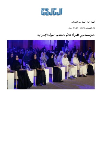 تارﺎﻣﻹا ﻦﻣ رﺎﺒﺧأ ,راﺪﻟا رﺎﺒﺧأ ءﺎﺴﻣ 21:52 2025 ﺲﻄﺴﻏأ 28 ﺔﻴﺗارﺎﻣﻹا ةأﺮﻤﻟا ىﺪﺘﻨﻣ» ﻢّﻈﻨﺗ ةأﺮﻤﻠﻟ ﺑد ﺔﺴﺳﺆﻣ»