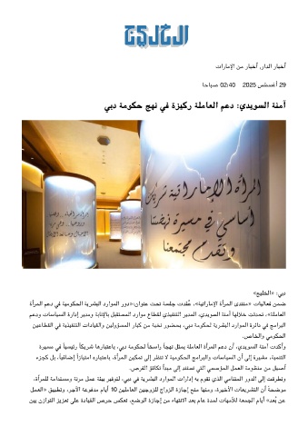 ةأﺮﻤﻟا ﻢﻋد ﻓ ﺔﻴﻣﻮﺤﻟا ﺔﻳﺮﺸﺒﻟا دراﻮﻤﻟا رود»:ناﻮﻨﻋ ﺖﺤﺗ ﺔﺴﻠﺟ تﺪﻘﻋ ،«ﺔﻴﺗارﺎﻣﻹا ةأﺮﻤﻟا ىﺪﺘﻨﻣ» تﺎﻴﻟﺎﻌﻓ ﻦﻤﺿ