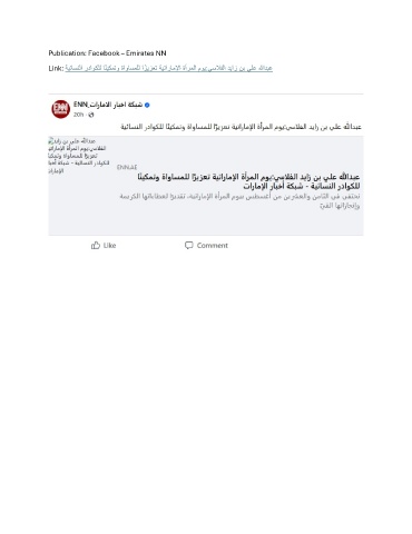 Publication: Facebook – Emirates NN Link: ةيئاسنلا رداوكلل اًنيكمتو ةاواسملل ا ً زيزعت ةيتاراملإا ةأرملا موي:يسلافلا دياز نب يلع اللهدبع