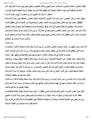 ﺔﺑﺳﺎﻧﻣ لﻛﺷﯾ ،ﺔﯾﺗارﺎﻣﻹا ةأرﻣﻟا موﯾ نأ ،يرﺎﺷﺗﺳﻻا سﻠﺟﻣﻠﻟ دﻋﺎﺳﻣﻟا مﺎﻌﻟا نﯾﻣﻷا ،برﻘﻣﻟا ﮫﻔﯾﻠﺧ ةرﯾﻣ تدﻛأو