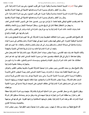 ﻰﻧﻌﻣ لﻣﺣﯾ مﺎﻌﻟا اذھ ﺔﯾﺗارﺎﻣﻹا موﯾ» :ﺔﻗرﺎﺷﻟا لﺎﻣﻋأ تادﯾﺳ سﻠﺟﻣ ﺔﺳﯾﺋر ،ﻲﻣﺳﺎﻘﻟا دﺟﺎﻣ تﻧﺑ دﻧھ ﺔﺧﯾﺷﻟا تﻟﺎﻗو