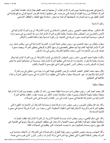 ﻲﻓ ﺔﯿﺗارﺎﻣﻹا ةأﺮﻤﻟا مﻮﯾ نأ ،ﺔﻗرﺎﺸﻟا ةرﺎﻣﻹ يرﺎﺸﺘﺳﻻا ﺲﻠﺠﻤﻟا ﺲﯿﺋر ،ﻲﻤﯿﻌﻨﻟا ﻒﯿﺤﻠﺑ ﷲﺪﺒﻋ رﻮﺘﻛﺪﻟا ﺪﱠﻛأ