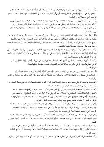 ﺔﻧﺎﻤﻟﺎﺑو تارﺎﻣﻹا ﺔﻨﺑا ﺎﻬﺘﻘﻘﺣ ﺘﻟا ﺔﻴﻋﻮﻨﻟا تازﺎﺠﻧﻹﺎﺑ ﻔﺘﺤﻨﻟ زاﺰﺘﻋاو ﺮﺨﻓ ﻞﺑ ﺎﻬﻴﻓ ﻒﻘﻧ ﺔﺒﺳﺎﻨﻣ ﺔﻴﺗارﺎﻣﻹا ةأﺮﻤﻟا مﻮﻳ