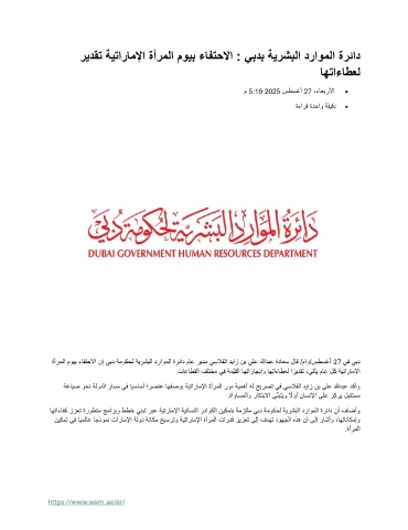 ريدقت ةيتاراملإا ةأرملا مويب ءافتحلاا : يبدب ةيرشبلا دراوملا ةرئاد