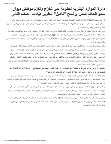 ﻊﻠطﺗﻧو ،رﺎﻛﺗﺑﻻاو مﻠﻌﺗﻟﺎﺑ فﻐﺷو مازﺗﻟا نﻣ مﻛﺎﺣﻟا وﻣﺳ ناوﯾد وﻔظوﻣ هرﮭظأ ﺎﻣﺑ ،ﻲﺑد ﺔﻣوﻛﺣﻟ ﺔﯾرﺷﺑﻟا دراوﻣﻟا ةرﺋاد ﻲﻓ ،رﺧﻔﻧو .ﻲﺑد ةرﺎﻣإ