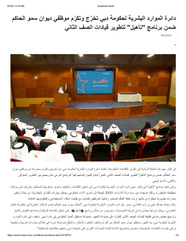 ﺔﺑﻛاوﻣ ﻰﻠﻋ ﺎﮭﺗردﻗو لﺑﻘﺗﺳﻣﻠﻟ ﺎﮭﺗﯾزھﺎﺟ زﯾزﻌﺗو ﺎﮭﻠﯾھﺄﺗو تاءﺎﻔﻛﻟا نﯾﻛﻣﺗ ﻰﻟإ ﻲﺑد ﺔﻣوﻛﺣﻟ ﺔﯾرﺷﺑﻟا دراوﻣﻟا ةرﺋاد ﻲﻌﺳ رﺎطإ ﻲﻓ "لﯾھﺄﺗ" ﺞﻣﺎﻧرﺑ ذﯾﻔﻧﺗ ﻲﺗﺄﯾو