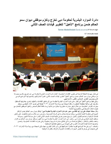مازتلا نم مكاحلا ومس ناويد وفظوم هرهظأ امب ،يبد ةموكحل ةيرشبلا دراوملا ةرئاد يف ،رخفنو .يبد ةرامإ يف يموكحلا لمعلا لبقتسم