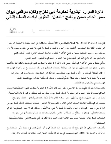 https://menafn.com/arabic/1109890904/ﻲﻧﺎﺛﻟا-فﺻﻟا-تادﺎﯾﻗ-رﯾوطﺗﻟ-لﯾھﺄﺗ-ﺞﻣﺎﻧرﺑ-نﻣﺿ-مﻛﺎﺣﻟا-وﻣﺳ-ناوﯾد-ﻲﻔظوﻣ-مرﻛﺗو-جرﺧﺗ-ﻲﺑد-ﺔﻣوﻛﺣﻟ-ﺔﯾرﺷﺑﻟا-دراوﻣﻟا-ةرﺋاد 1/2