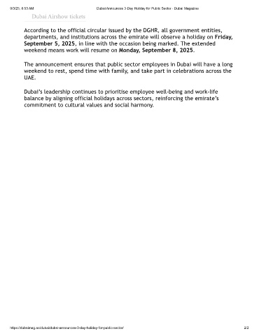 9/3/25, 8:53 AM Dubai Announces 3-Day Holiday for Public Sector - Dubai Magazine