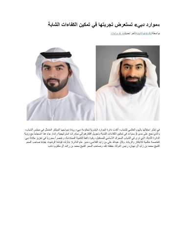 ،بابشلا سلجم يف لثمتملا ركتبملا اهجذومن ةداير ،يبد ةموكحل ةيرشبلا دراوملا ةرئاد تدكأ ،بابشلل يملاعلا مويلاب اهلافتحا راطإ يف