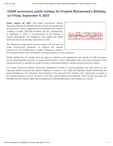 9/3/25, 8:53 AM DGHR announces public holiday for Prophet Muhammad's Birthday on Friday, September 5, 2025