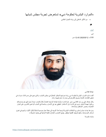 يف تاونس ثلاث ىدم ىلع حجن يذلاو ،بابشلا سلجم يف لثمتملا ركتبملا اهجذومن ةداير يبد ةموكحل ةيرشبلا دراوملا ةرئاد تدكأ