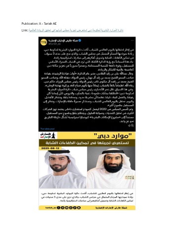 Publication: X – Tarish AE Link: ةيملاعلا ةدايرلا قيقحت يف اهبابش سلجم ةبرجت ضرعتست يبد ةموكحل ةيرشبلا دراوملا ةرئاد