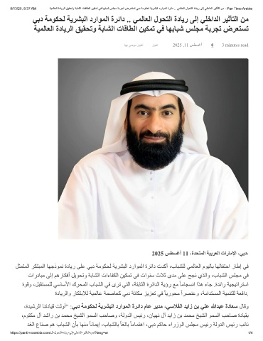 8/13/25, 8:37 AM ﺔﯾﻣﻟﺎﻌﻟا ةدﺎﯾرﻟا ﻖﯾﻘﺣﺗو ﺔﺑﺎﺷﻟا تﺎﻗﺎطﻟا نﯾﻛﻣﺗ ﻲﻓ ﺎﮭﺑﺎﺑﺷ سﻠﺟﻣ ﺔﺑرﺟﺗ ضرﻌﺗﺳﺗ ﻲﺑد ﺔﻣوﻛﺣﻟ ﺔﯾرﺷﺑﻟا دراوﻣﻟا ةرﺋاد .. ﻲﻣﻟﺎﻌﻟا لوﺣﺗﻟا ةدﺎﯾر ﻰﻟإ ﻲﻠﺧادﻟا رﯾﺛﺄﺗﻟا نﻣ - Pan Time Arabia