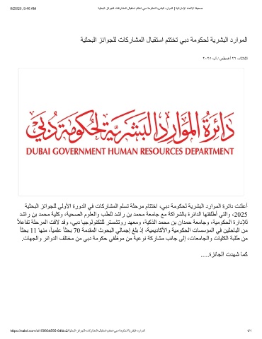 8/26/25, 9:46 AM ﺔﯾﺛﺣﺑﻟا زﺋاوﺟﻠﻟ تﺎﻛرﺎﺷﻣﻟا لﺎﺑﻘﺗﺳا مﺗﺗﺧﺗ ﻲﺑد ﺔﻣوﻛﺣﻟ ﺔﯾرﺷﺑﻟا دراوﻣﻟا | ﺔﯾﺗارﺎﻣﻹا دﺎﺣﺗﻻا ﺔﻔﯾﺣﺻ