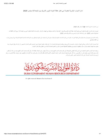 2025 رﺑﻣﺗﺑﺳ 5 ﺔﻌﻣﺟﻟا موﯾ فﯾرﺷﻟا يوﺑﻧﻟا دﻟوﻣﻟا ﺔﻠطﻋ نﻠﻌﺗ ﻲﺑد ﺔﻣوﻛﺣﻟ ﺔﯾرﺷﺑﻟا دراوﻣﻟا ةرﺋاد