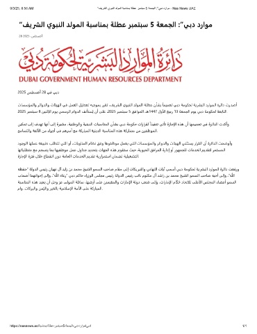 9/3/25, 8:56 AM "فﯾرﺷﻟا يوﺑﻧﻟا دﻟوﻣﻟا ﺔﺑﺳﺎﻧﻣﺑ ﺔﻠطﻋ رﺑﻣﺗﺑﺳ 5 ﺔﻌﻣﺟﻟا :"ﻲﺑد دراوﻣ - Nas News UAE
