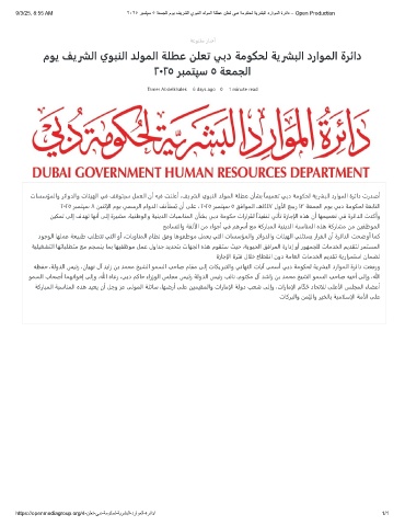 9/3/25, 8:55 AM ٢٠٢٥ رﺑﻣﺗﭘﺳ ٥ ﺔﻌﻣﺟﻟا موﯾ فﯾرﺷﻟا يوﺑﻧﻟا دﻟوﻣﻟا ﺔﻠطﻋ نﻠﻌﺗ ﻲﺑد ﺔﻣوﻛﺣﻟ ﺔﯾرﺷﺑﻟا دراوﻣﻟا ةرﺋاد – Open Production