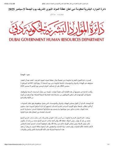 9/3/25, 8:52 AM 2025 رﺑﻣﺗﺑﺳ 5 ﺔﻌﻣﺟﻟا موﯾ فﯾرﺷﻟا يوﺑﻧﻟا دﻟوﻣﻟا ﺔﻠطﻋ نﻠﻌﺗ ﻲﺑد ﺔﻣوﻛﺣﻟ ﺔﯾرﺷﺑﻟا دراوﻣﻟا ةرﺋاد