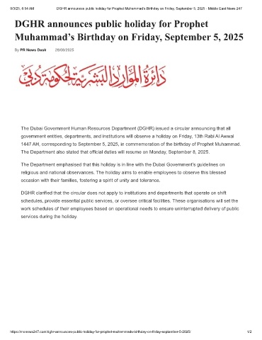 9/3/25, 8:54 AM DGHR announces public holiday for Prophet Muhammad’s Birthday on Friday, September 5, 2025 - Middle East News 247